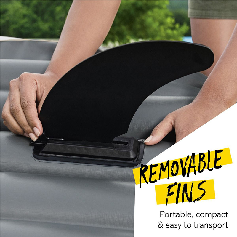 Built-in oar clasps hold kayak paddles allowing you to relax and enjoy the water, the removable fins can be swapped out depending on water conditions for extra stability