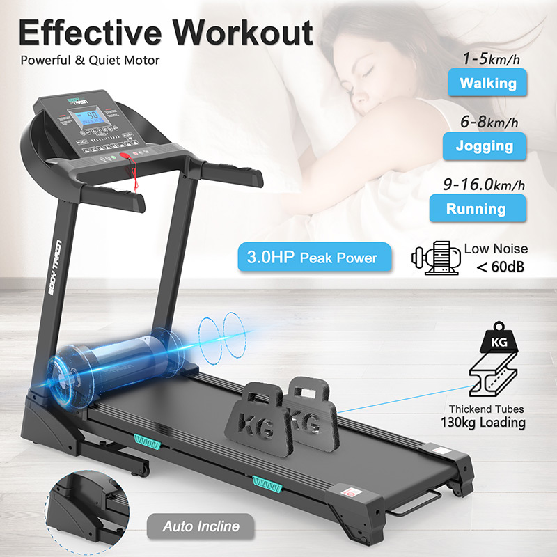 Quiet The treadmill is very quiet thanks to the powerful motor, running deck cushioning and laminated running belt. So there should be no problems with neighbours or sleeping family members.
