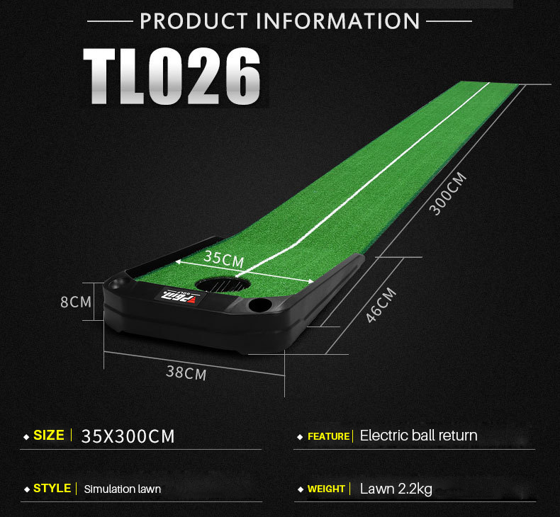 Hillman PGM 3m Golf Putting Trainer Artificial Turf with Electronic Ball Return