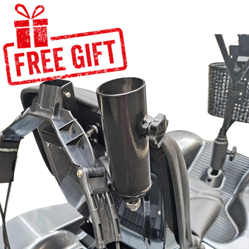 The clever modular design of the buggy includes the front and rear section, the easily removable seat, basket and steering column this clever design means that the Hillman Pro Golf Buggy is easily assembled and disassembled in minutes and will fit into the boots of most car boots. (we would recommend that this is a two-person job) The low-pressure Balloon Tyres combined with the twisting chassis sections ensure that all 4 wheels always remain in contact with the ground and provide you with a smooth ride and excellent stability, the rear stabilisers offer further peace of mind against tipping on inclines. The heavy-duty straps ensure that your golf bag remains secure even on the roughest of rough.