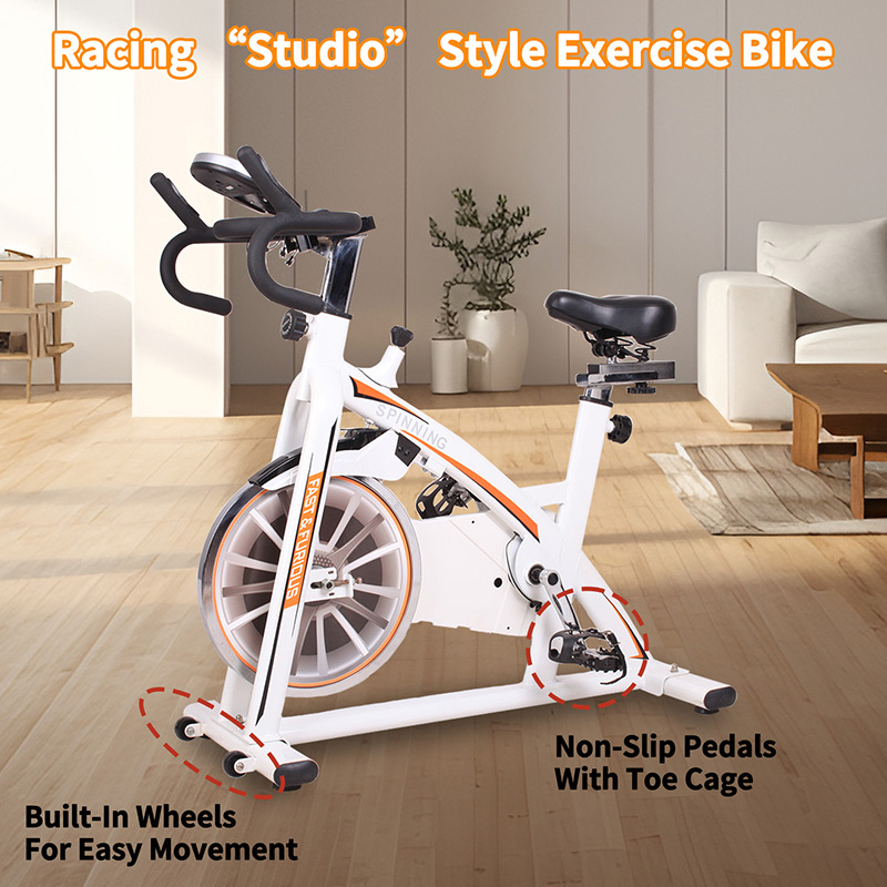 Straps and toe clips are fitted to ensure your feet are securely connected to the pedal, this ensures correct foot position on the pedal and makes it easier to build up speed using the ball of your foot. For serious training SPD pedals can easily be fitted to the bike.